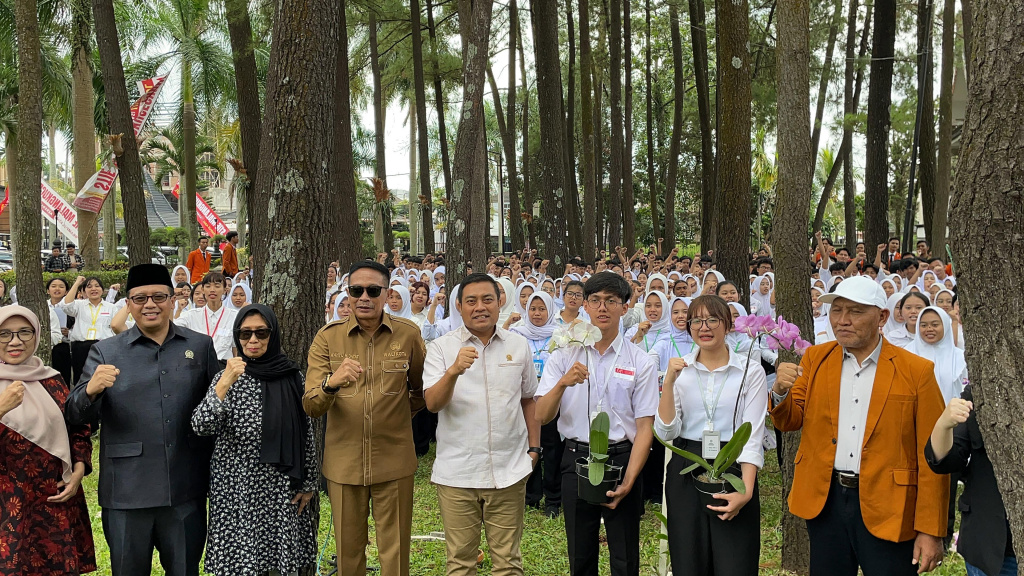 Komitmen STIE Malangkucecwara dalam menjaga 50 persen ruang terbuka hijau (RTH) di lingkungan kampus mendapat apresiasi dari Anggota Komisi E DPRD Jawa Timur, Dr. Puguh Wiji Pamungkas. Hal itu disampaikan saat menghadiri kegiatan penanaman bunga anggrek di RTH kampus, Senin (15/9/2025).