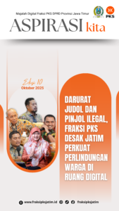 Fraksi Partai Keadilan Sejahtera (PKS) DPRD Jawa Timur menilai maraknya praktik judi online (judol) dan pinjaman online (pinjol) ilegal sudah masuk kategori darurat sosial yang perlu segera direspons dengan langkah hukum yang tegas. Hal ini disampaikan oleh Anggota Fraksi PKS DPRD Jawa Timur, Harisandi Savari, dalam rapat paripurna DPRD Jatim pada Kamis (30/10/2025).