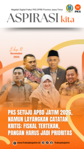 Fraksi Partai Keadilan Sejahtera (PKS) DPRD Jawa Timur resmi menyampaikan pendapat akhir terhadap Raperda APBD Jatim 2026 dalam rapat paripurna, Sabtu (15/11/2025). Meski menyatakan setuju, PKS menegaskan sejumlah catatan strategis yang harus menjadi perhatian serius Pemerintah Provinsi Jawa Timur.